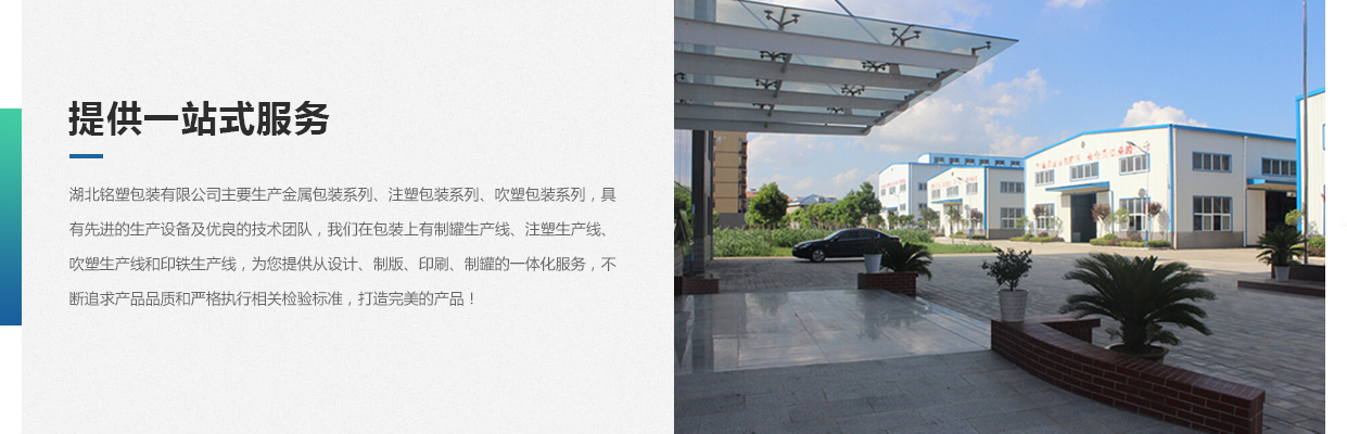 湖北銘塑包裝有限公司一家集研發(fā)、生產(chǎn)、銷售于一體的較優(yōu)秀民營企業(yè),技術(shù)力量雄厚,產(chǎn)品質(zhì)量可靠。位于交通暢順,百業(yè)興旺、經(jīng)濟富裕、政策開放的孝感開發(fā)區(qū)域。我們企業(yè)的營銷戰(zhàn)略是以建筑為土壤,以產(chǎn)品為種子,以質(zhì)量為肥料,讓綠色鋪滿全球。憑借多年來的行業(yè)經(jīng)驗,公司不斷進行創(chuàng)新和研發(fā),為市場提供更廣泛的產(chǎn)品應用領域和更好環(huán)保節(jié)能產(chǎn)品,為國家能源環(huán)保戰(zhàn)略和可持續(xù)發(fā)展戰(zhàn)略作出應有的貢獻。 湖北銘塑包裝有限公司主要生產(chǎn)金屬包裝系列、注塑包裝系列、吹塑包裝系列,具有先進的生產(chǎn)設備及優(yōu)良的技術(shù)團隊,我們在包裝上有制罐生產(chǎn)線、注塑生產(chǎn)線、吹塑生產(chǎn)線和印鐵生產(chǎn)線,為您提供從設計、制版、印刷、制罐的一體化服務,不斷追求產(chǎn)品品質(zhì)和嚴格執(zhí)行相關(guān)檢驗標準,打造更好的產(chǎn)品!